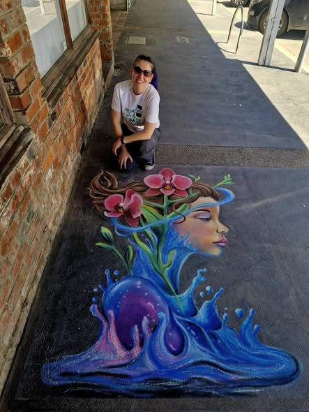 I'm Stacey Bennett, a pastel and street chalk artist based in Jimboomba, where I create detailed portraits and wildlife in my studio, and dynamic, large-scale temporary chalk murals in public spaces. My street work is driven by the love of surprising people outside traditional gallery walls and the beauty of temporary art—a unique experience encouraging viewers to see the piece before it is lost forever.